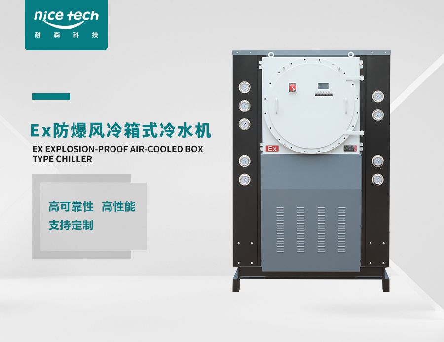 The Ex air-cooled explosion-proof scroll chiller utilizes efficient scroll compressors and explosion-proof controls, meeting explosion-proof certifications for safe operation in hazardous areas.