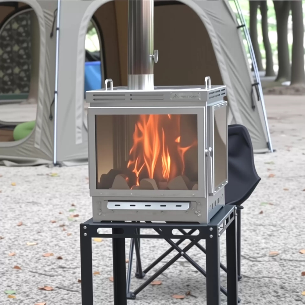 The INBESTCAMP Panoramic Stove (Model: ICP-ZPL-M-Q-D007) is more than a high-performance tent stove; it's a landmark thermal appliance engineered for glamping, commercial campgrounds, and large-group outdoor adventures. Transcending basic heating, its signature four-sided panoramic fire-viewing glass and oversized 30L combustion chamber transform campsite living into a warm, safe, and visually captivating immersive spectacle. Whether placed in a winter snow tent, a mountain cabin, or a communal campsite space, it instantly becomes the undisputed centerpiece that captivates attention and sets the mood.